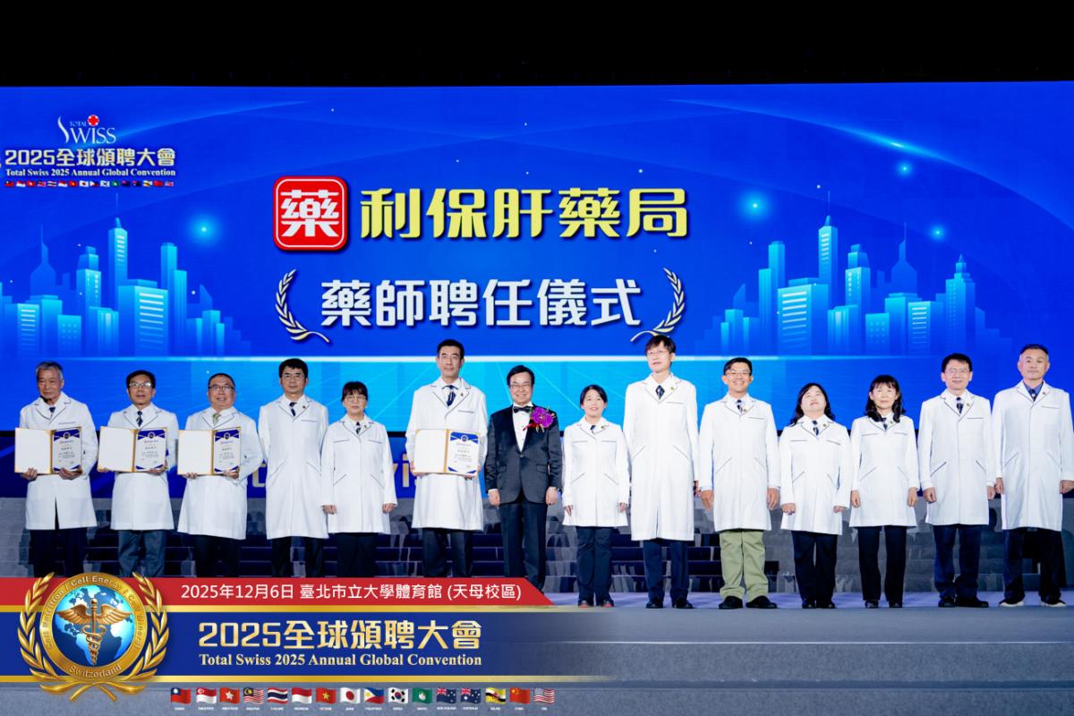第二個進場的是藥師隊伍,王博士與何顧問帶領著一群白袍藥師一起站上舞台,展現出一股專業的氣勢。