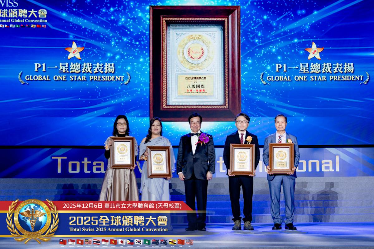 四個階段的大進場完成合影之後,台北市立大學18位武藝精湛的同學,用融合舞蹈與武術的力與美,為大會進行開場表演。在開場表演贏得滿堂喝采之後,十位帥哥美女主持人吳玫儒皇冠、邱瑞靜皇冠、Corrinne總裁、余弘毅總裁、凌偉峻總裁、韓國翻譯佳佳、日本翻譯山下、越南翻譯玄玄、印尼翻譯妮妮以及泰國翻譯Lily,共同揭示2025年Total Swiss全球頒聘大會充滿使命與熱情的主題:「預防醫學大升級,不留貧病在人間。A New Era of Preventive Medicine. A World Free from Poverty and Sickness.」