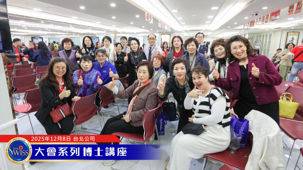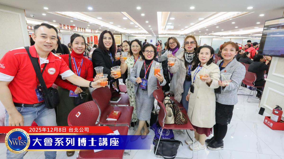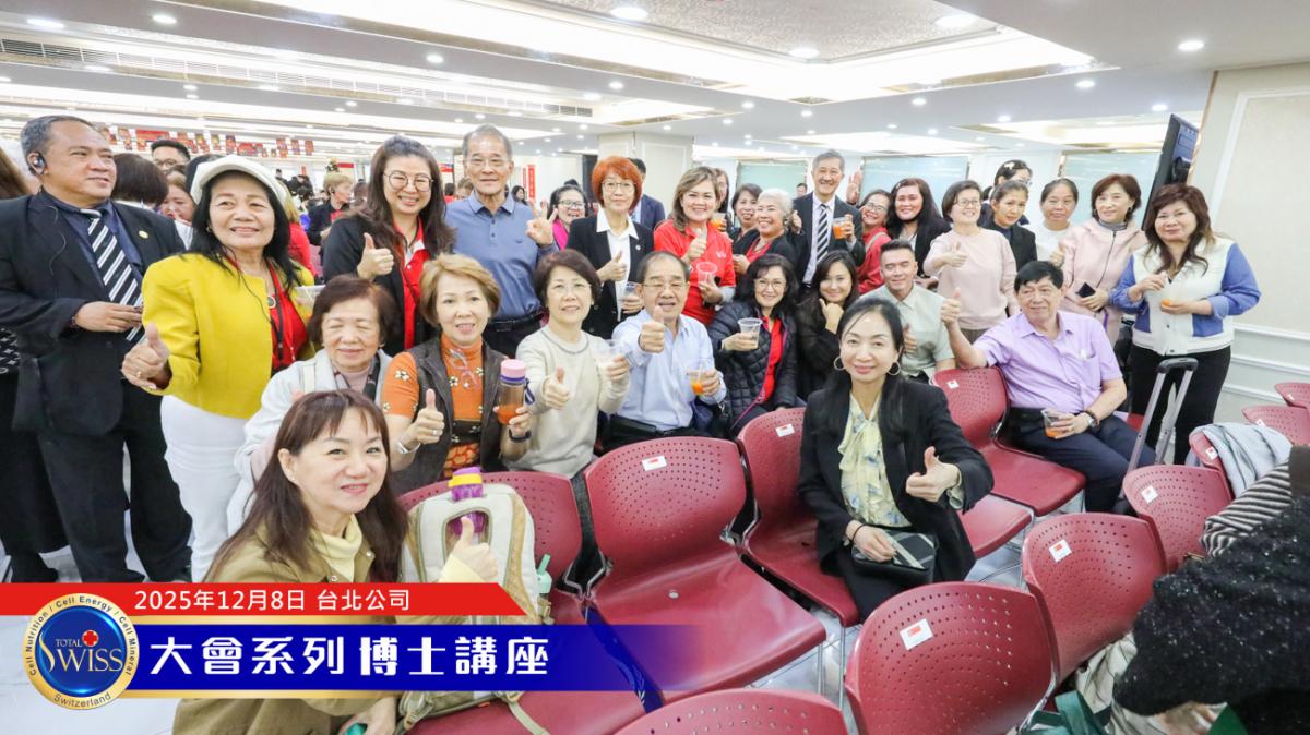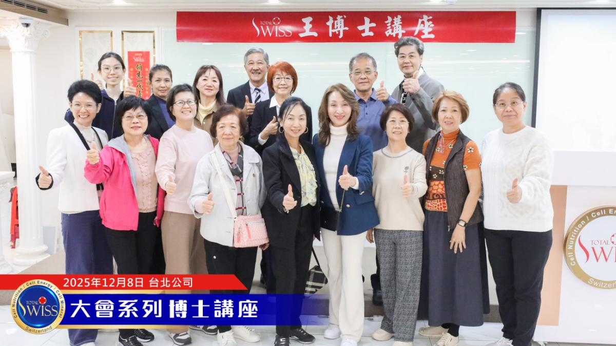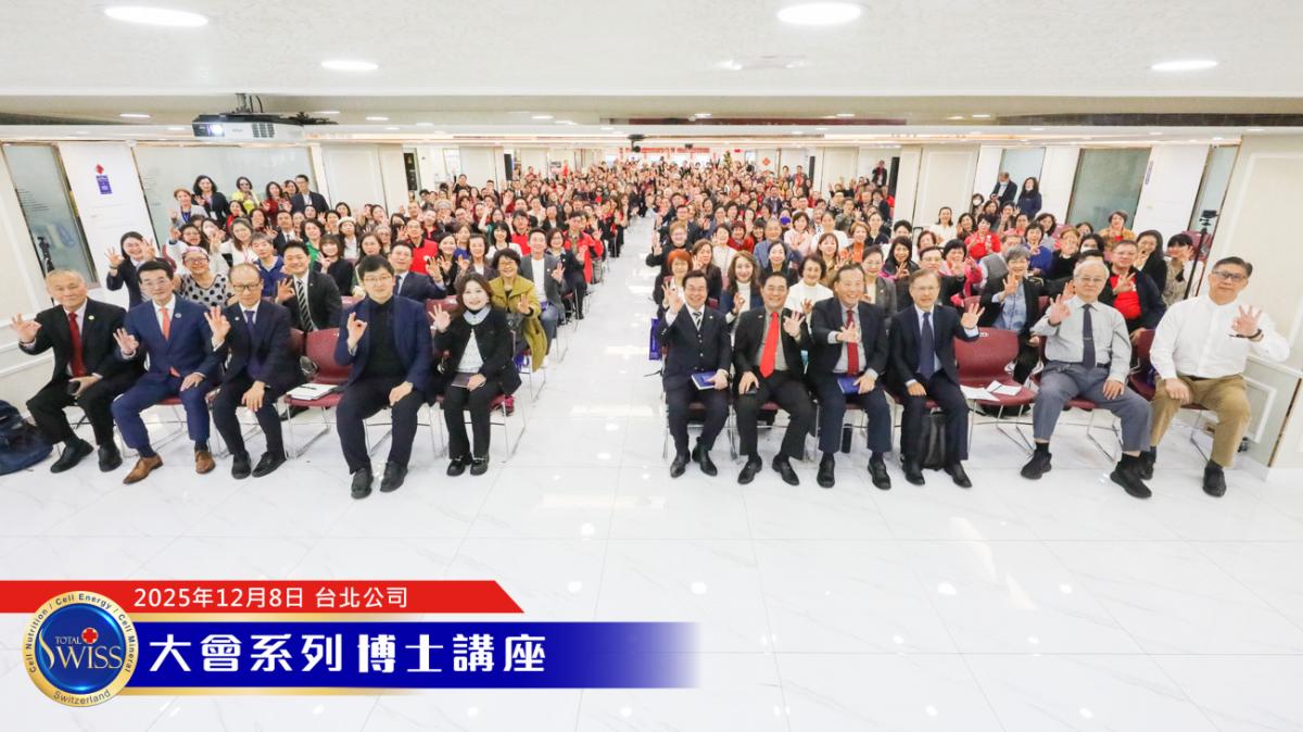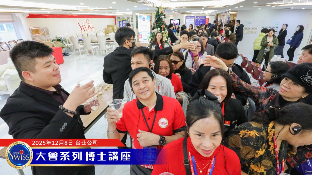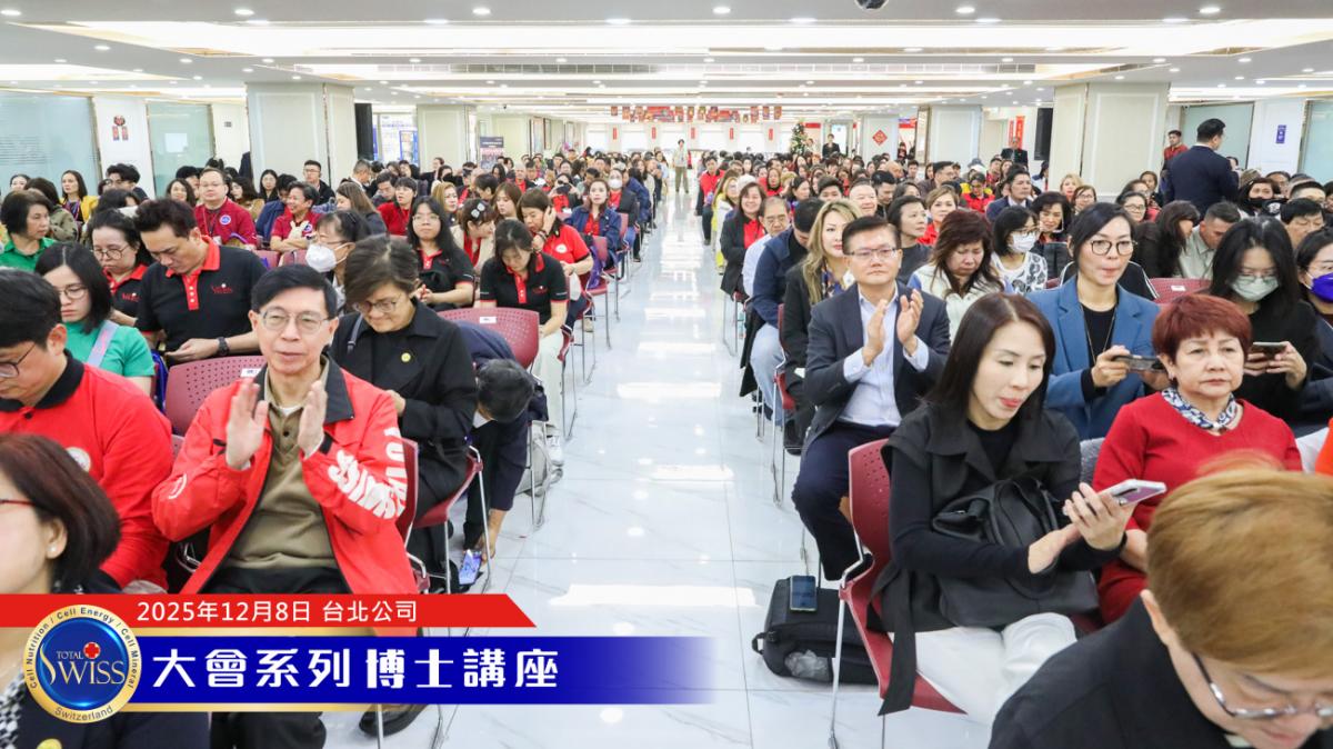 2025年12月8日,Total Swiss全球班聘系列活動最後一天,培訓課程的壓軸內容,由王博士親自上場,扮演Total Swiss醫療集團大轉型的擘畫師,並向全球夥伴展現出於2026年及以後Total Swiss遼闊而清晰的藍圖。有全球市場耕耘計畫,有藥局強化更新計畫,有線上行銷計畫,有台北港三萬坪基地建設計畫,每走一步,都是Total Swiss的大躍進,也是健康產業的新篇章。