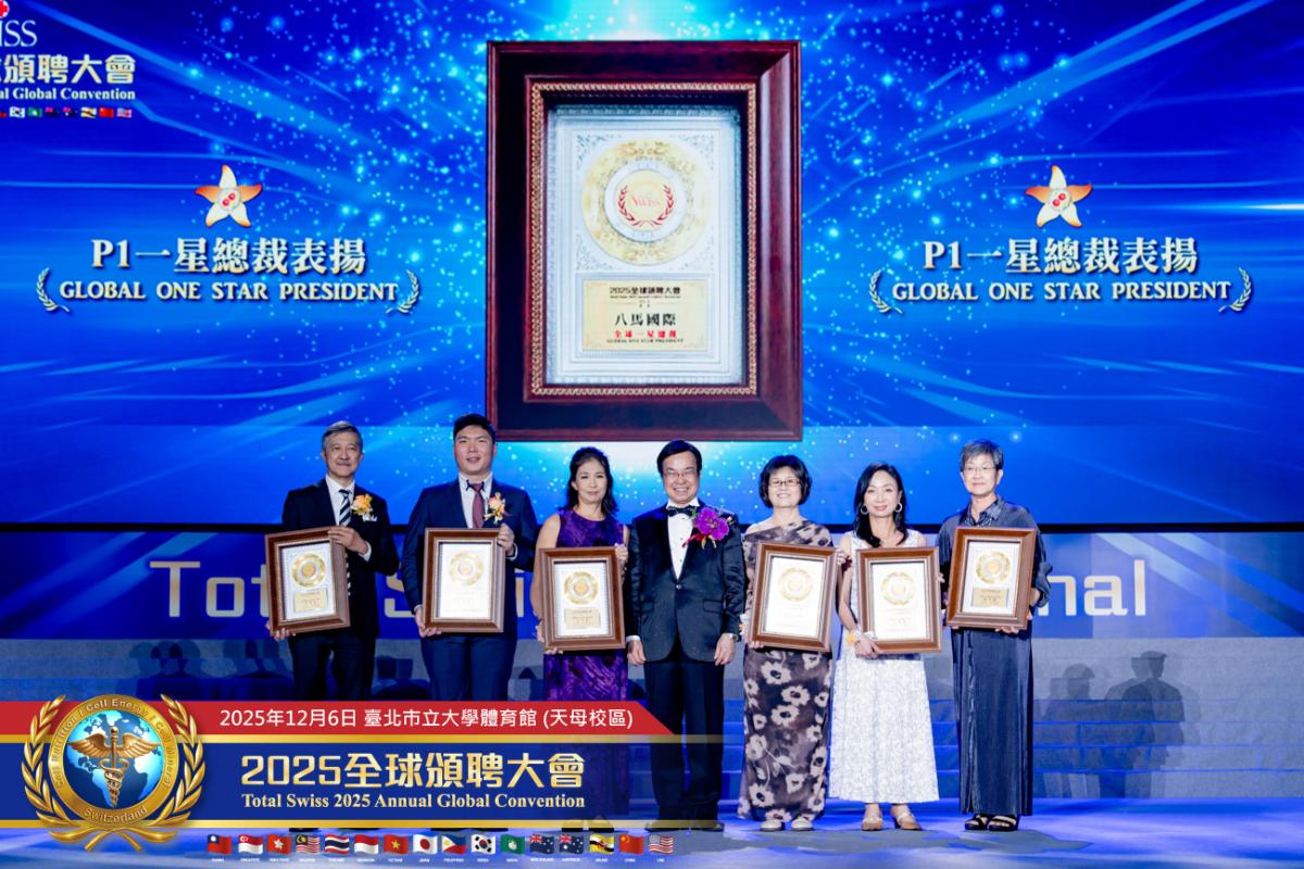 四個階段的大進場完成合影之後,台北市立大學18位武藝精湛的同學,用融合舞蹈與武術的力與美,為大會進行開場表演。在開場表演贏得滿堂喝采之後,十位帥哥美女主持人吳玫儒皇冠、邱瑞靜皇冠、Corrinne總裁、余弘毅總裁、凌偉峻總裁、韓國翻譯佳佳、日本翻譯山下、越南翻譯玄玄、印尼翻譯妮妮以及泰國翻譯Lily,共同揭示2025年Total Swiss全球頒聘大會充滿使命與熱情的主題:「預防醫學大升級,不留貧病在人間。A New Era of Preventive Medicine. A World Free from Poverty and Sickness.」