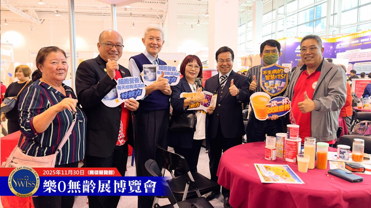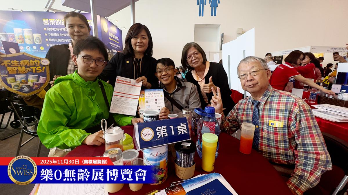 除了公司安排的洽談桌椅座無虛席外,Total Swiss展位靠近落地窗的場邊空地,也被超過十組夥伴用作臨時的分享溝通場所。因此,在高雄展覽館樂齡展現場,除了有好幾組夥伴主動出擊、舉牌邀約之外,還有近20組夥伴同時在跟體驗者進行進一步的溝通。