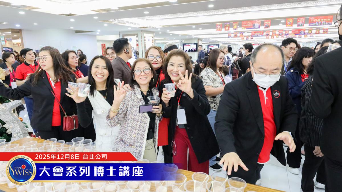 2025年12月8日,Total Swiss全球班聘系列活動最後一天,培訓課程的壓軸內容,由王博士親自上場,扮演Total Swiss醫療集團大轉型的擘畫師,並向全球夥伴展現出於2026年及以後Total Swiss遼闊而清晰的藍圖。有全球市場耕耘計畫,有藥局強化更新計畫,有線上行銷計畫,有台北港三萬坪基地建設計畫,每走一步,都是Total Swiss的大躍進,也是健康產業的新篇章。