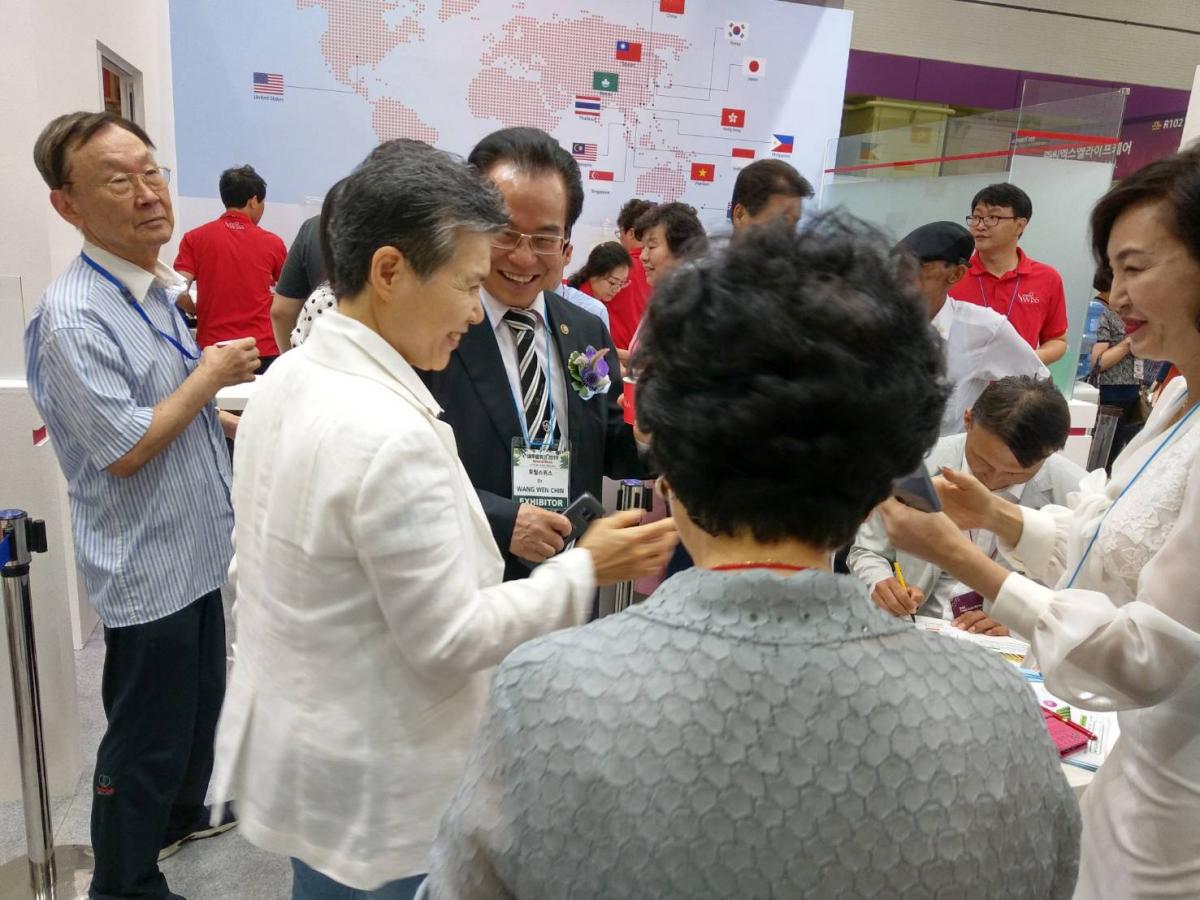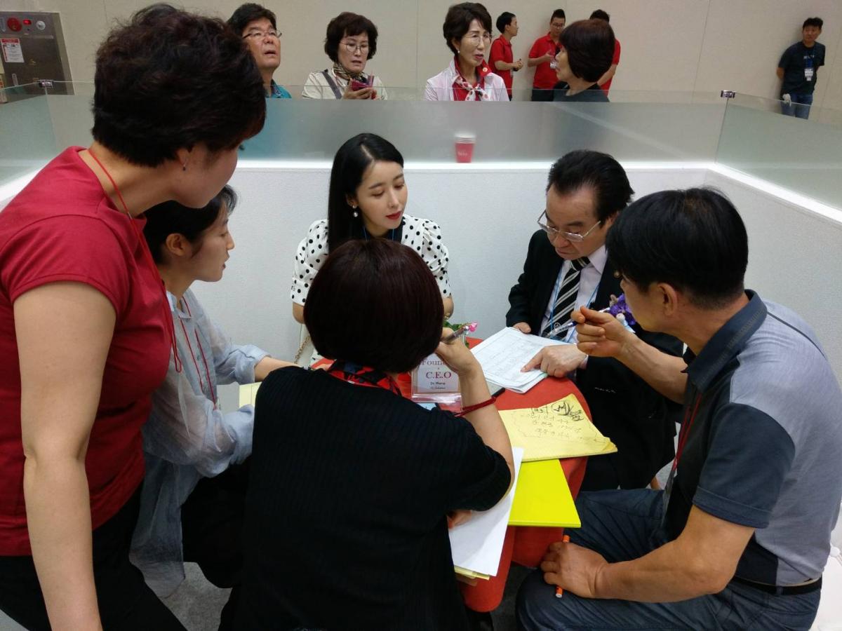 8月1日,開展第一天,王博士一大早就在韓國宋國柱總經理的陪同下來到Total Swiss關心許多展出細節,對於產品要如何正確沖泡,來凸顯產品的營養價值及口感風味,更有細膩的指導。