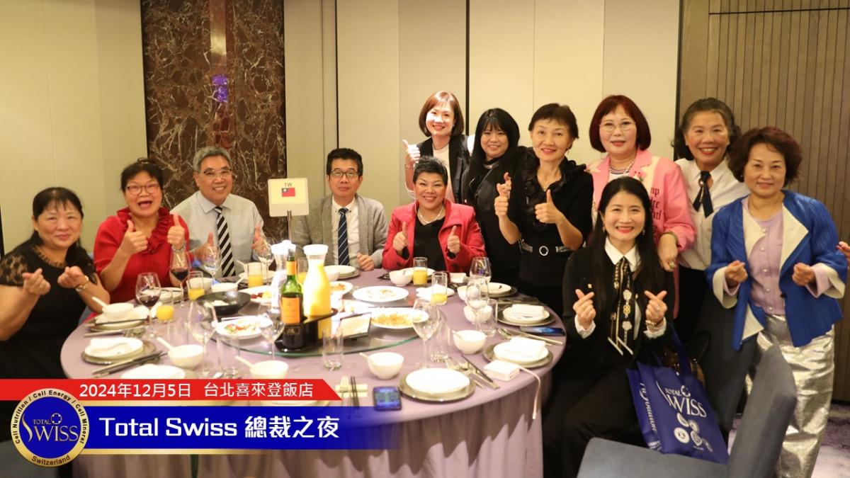 晚宴即將進入尾聲的時候,王博士十分肯定2024年總裁之夜全球一家的氣氛,他說:「Total Swiss 是一家人,We are family! 我們要一起成功,不分彼此。不管是哪個組織,我們都要互相幫助、互相扶持,讓我們的明天變得更好。」