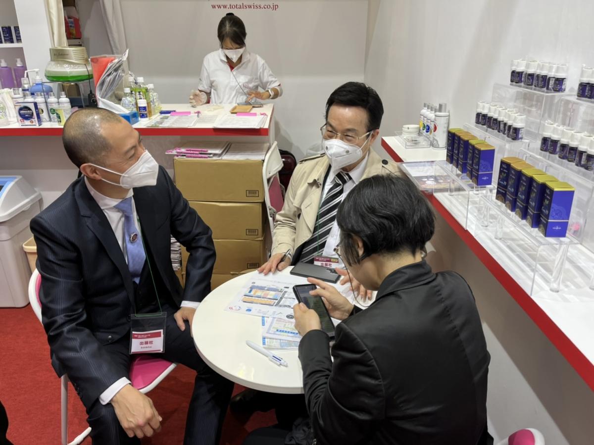 2022年10月14日,東京第二屆感染對策展覽會最後一天展覽,Total Swiss展位一開動就是紅盤,展覽細部還沒完全就緒,就已經有一位守候多時的參訪者急著加入了會員。
