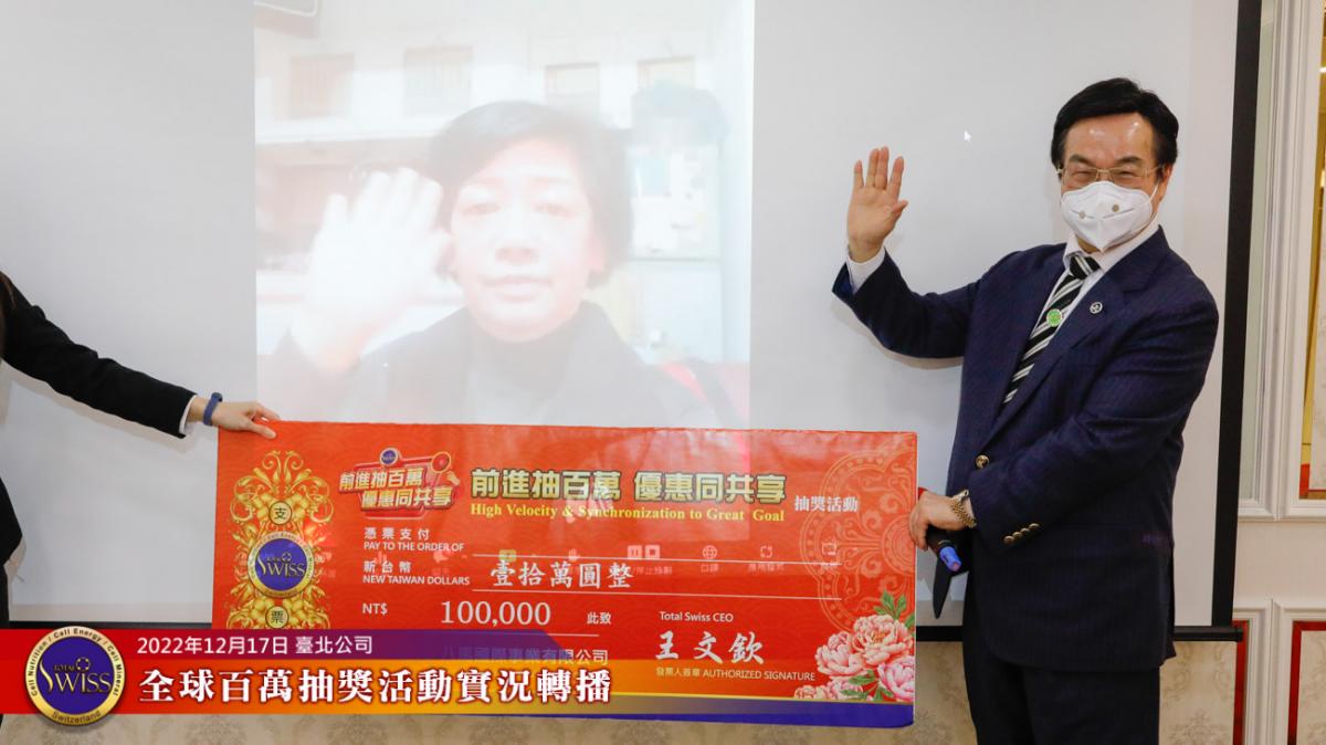 Total Swiss百萬抽獎全球實況轉眼已經進行了一整年,第十二次百萬抽獎活動於12月17日下午1點半起在台北總公司七樓舉行。