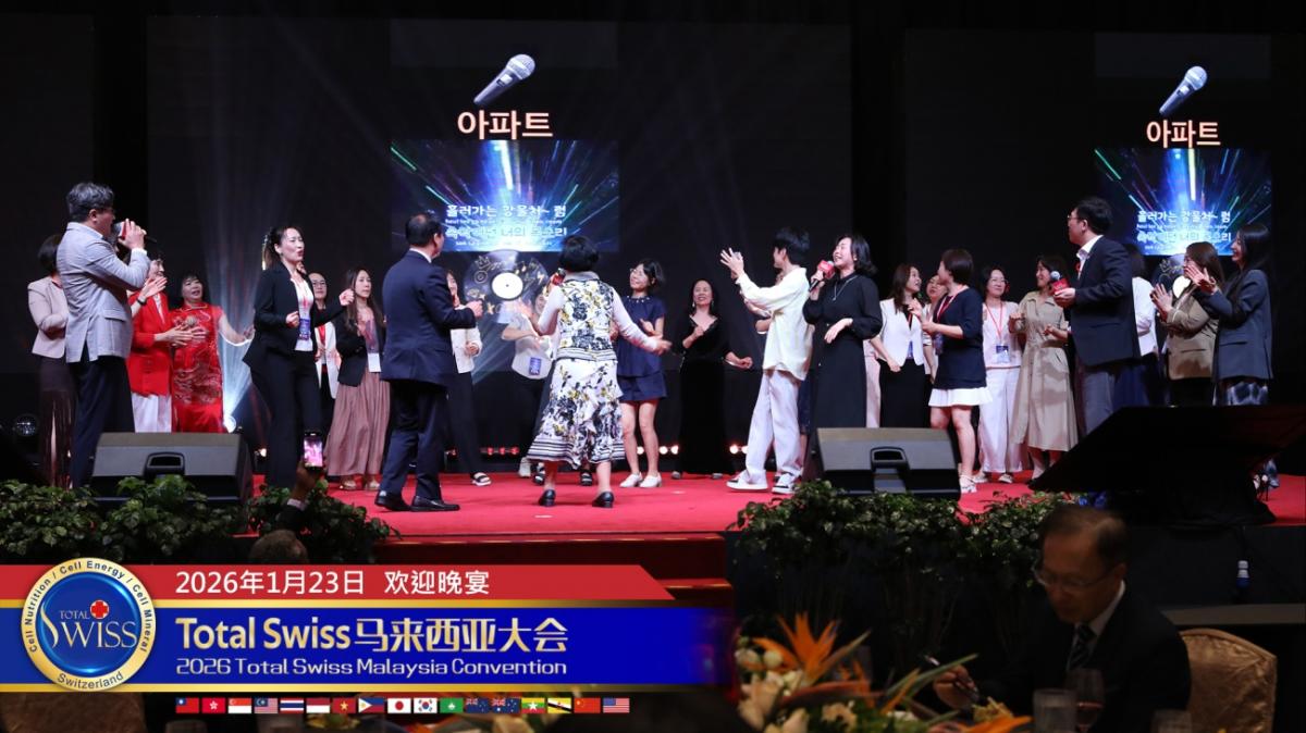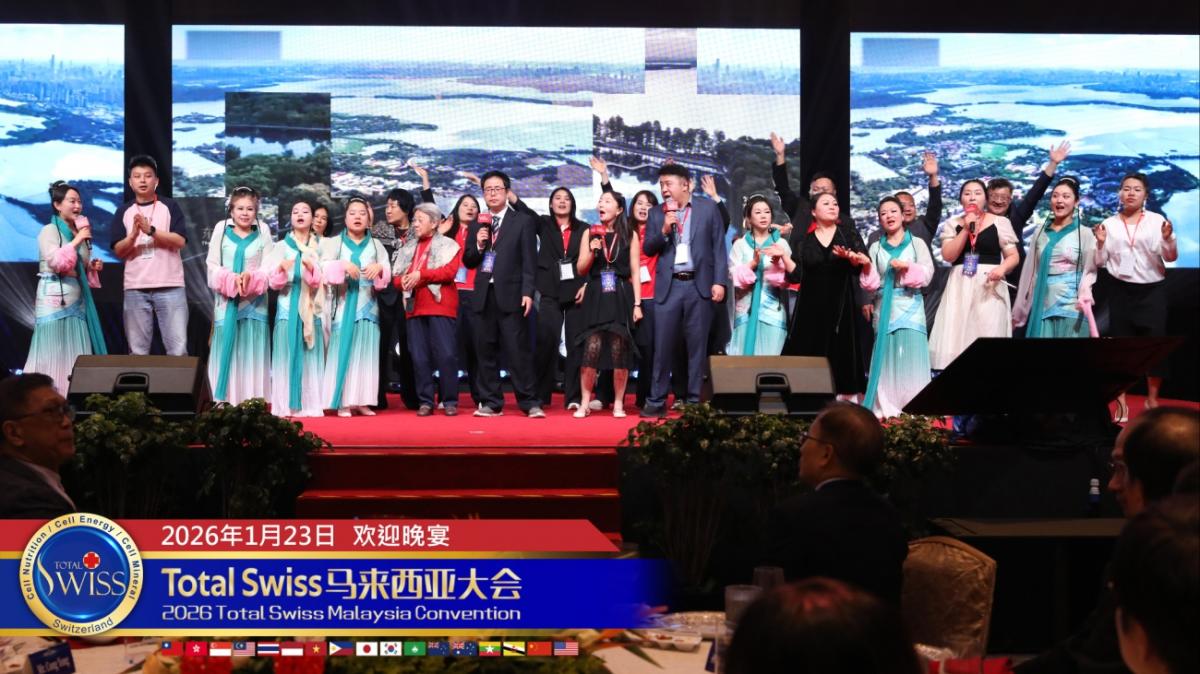 隨後是北京團隊的手語表演。在這個溫馨的表演過程中,舞台背景影片的每一幀都是一個又一個夥伴從病痛走向健康的故事。手語表演最後,二星總裁郭慧秀特別代表演出者向王博士致上最深的感謝。她說:「這些演出者都是因為Total Swiss而獲得改變。他們之中有些人曾經病到連社區都走不出去,但現在卻能飛來馬來西亞,在舞台上表演給大家看。」