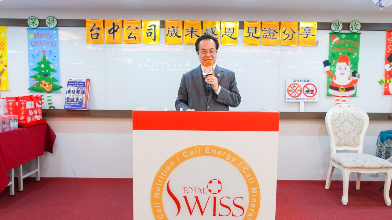 12月22日,Total Swiss在台北公司召開2021年台灣區總裁暨主管會議;緊接著, 12月23日下午,Total Swiss台中公司再舉辦了一場歲末感恩見證分享會。三百多位與會的夥伴,把台中公司24樓大會議室跟兩個小教室都塞滿了,現場呈現出一股自2020年初疫情爆發以來,已經很久沒有感受到的熱情氣氛。