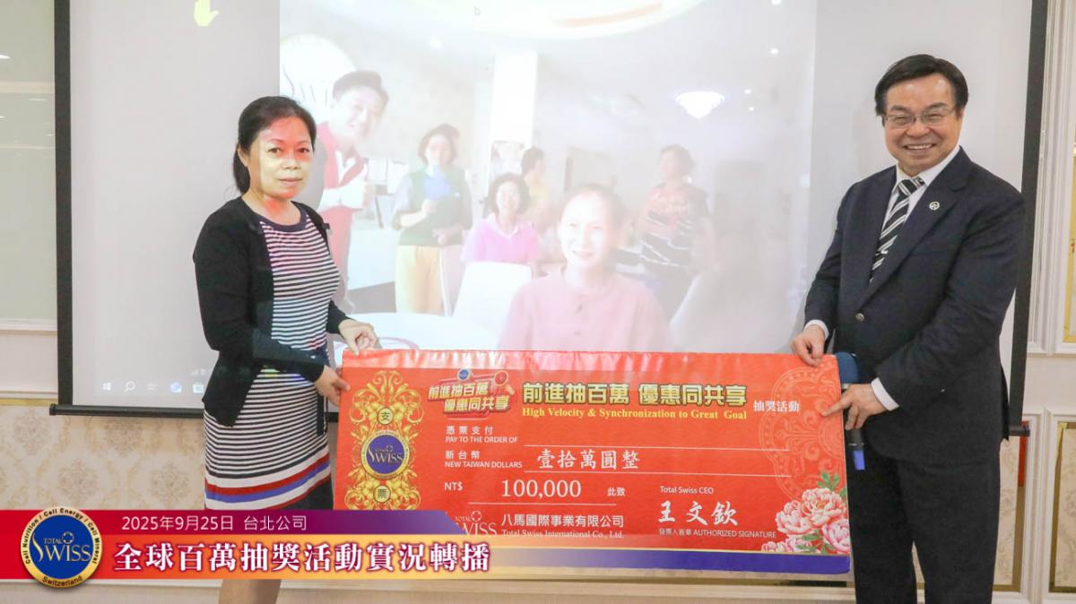 9月26、27日,王博士與全球領導人將陸續由各地啟程飛往美國,參加Total Swiss美國市場Grand Opening活動,第45回全球百萬抽獎因此提前到周四(9月25日)下午舉行,由於第44回抽獎台北現場好運連環爆,連續有夥伴中了兩個一百萬與一個三十萬。因此,第45回抽獎時,有許多中南部夥伴專程趕來台北參加,想要沾一沾台北現場的運氣,看看能不能在台北抱走百萬大獎。