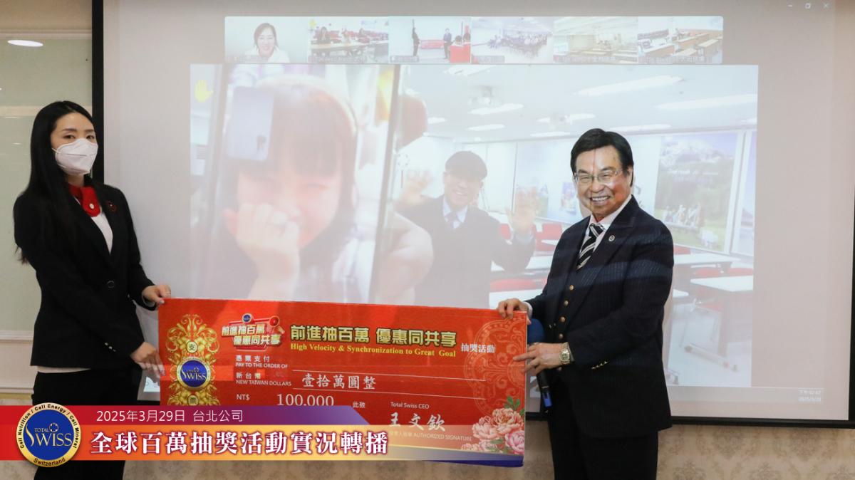 2025年3月29日下午,Total Swiss第39回百萬抽獎在台北公司七樓舉行。全台分公司、藥妝藥局以及全球各據點也透過線上轉播讓全球夥伴可以同步參與。