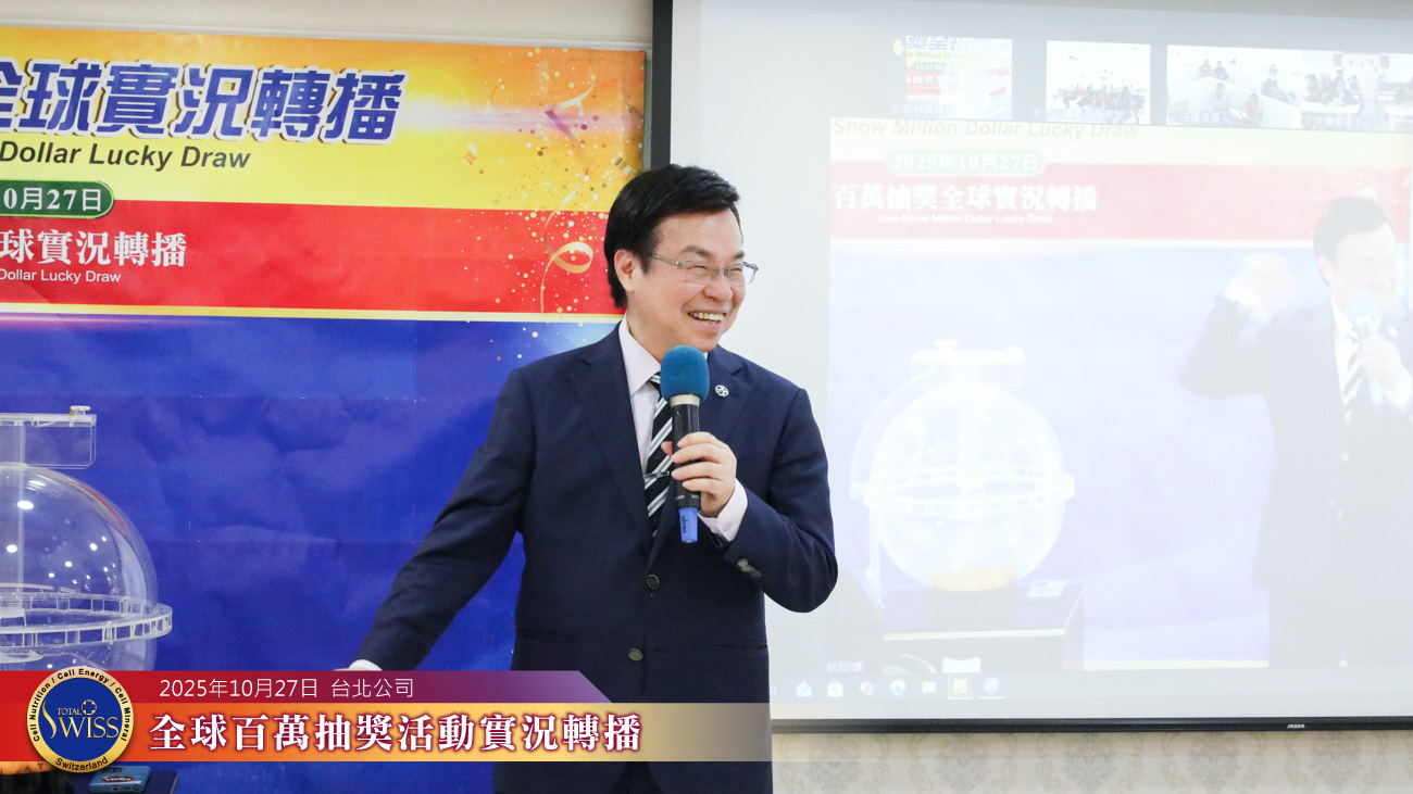 在完成第45回全球百萬抽獎頒獎後,王博士在講...
